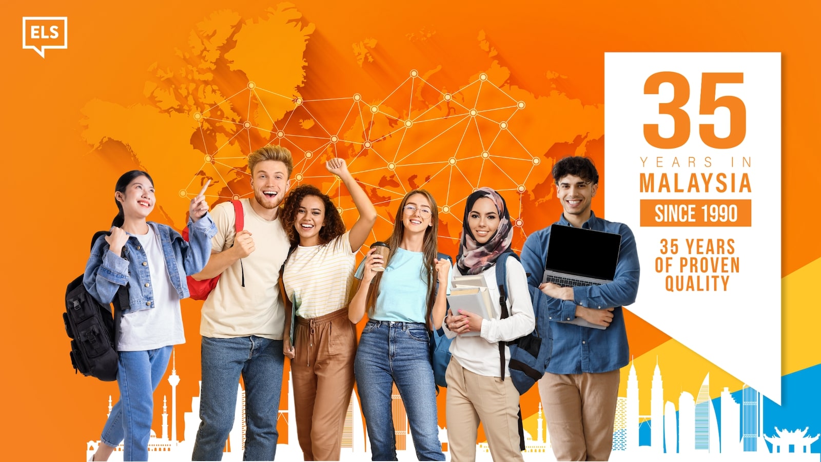 In 1990, ELS Malaysia launched Malaysia's first intensive English programme. Since then, we have helped thousands of students from around the world improve their English and build brighter futures. As part of a global network, we're proud to celebrate 35 years of teaching, learning, and making real connections.